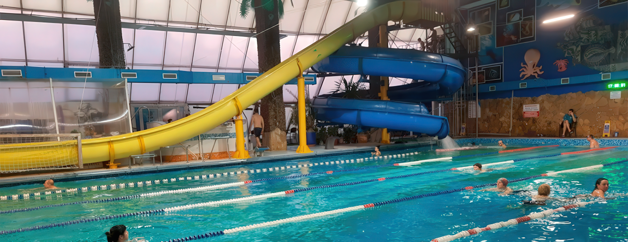 Це закритий аква-фітнес комплекс із розважальною та оздоровчою спрямованістю, де можна поєднати плавання, відпочинок біля води та водні розваги. Комплекс приваблює як місцевих мешканців, так і гостей міста завдяки різноманітності водних атракціонів та можливостям для активного відпочинку під одним дахом.