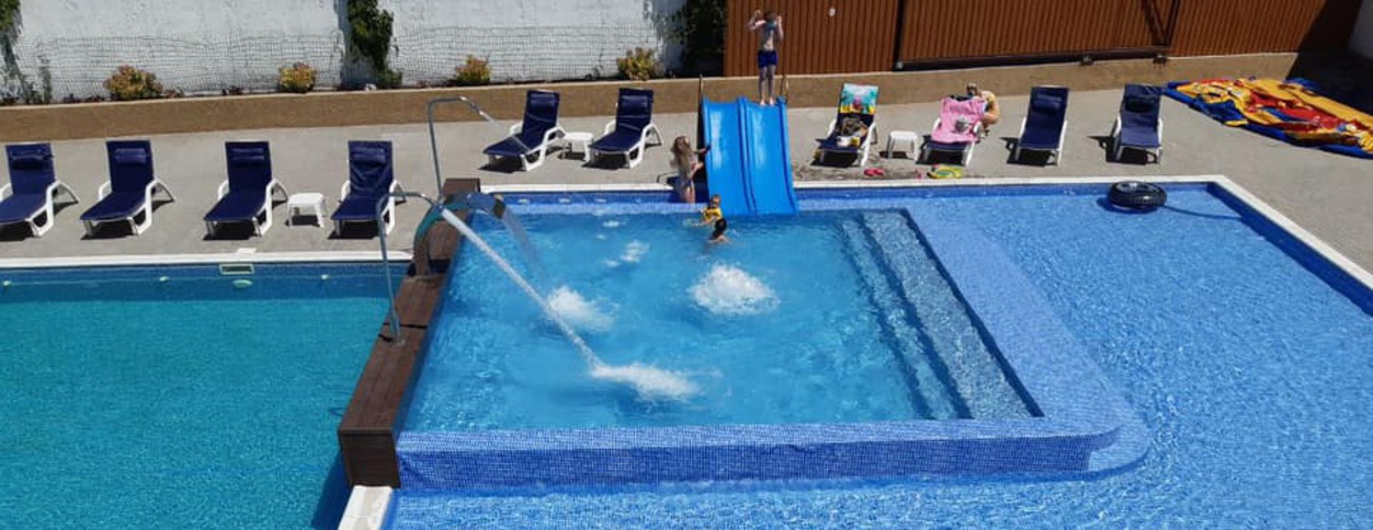 На території комплексу функціонує 3 басейни із прісною водою, розраховані на різні вікові категорії.