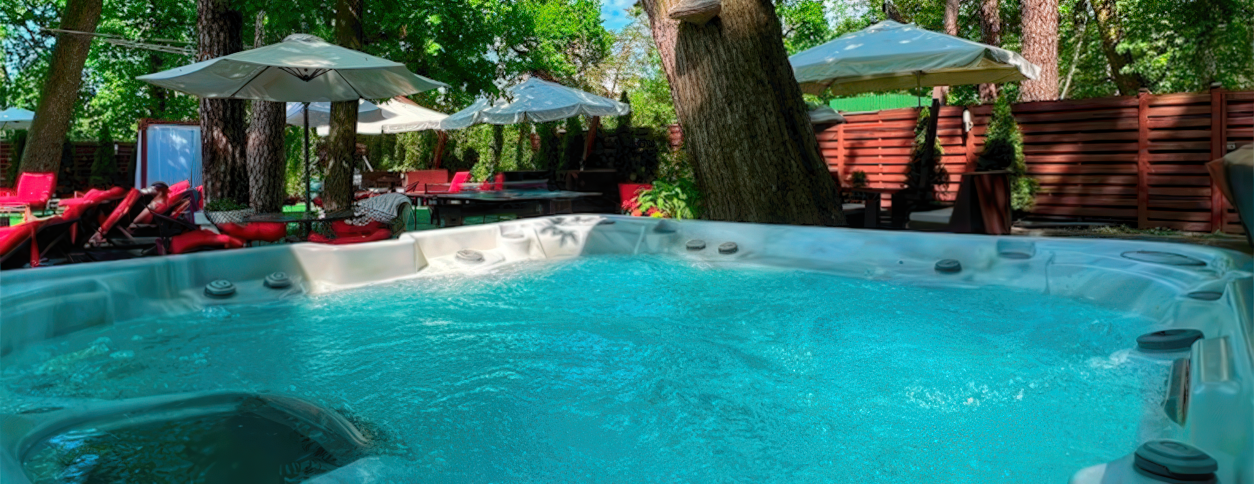 Температура води підтримується на рівні 35 та доповнюється системою підігріву, завдяки чому купання залишається комфортним навіть у прохолодну погоду.