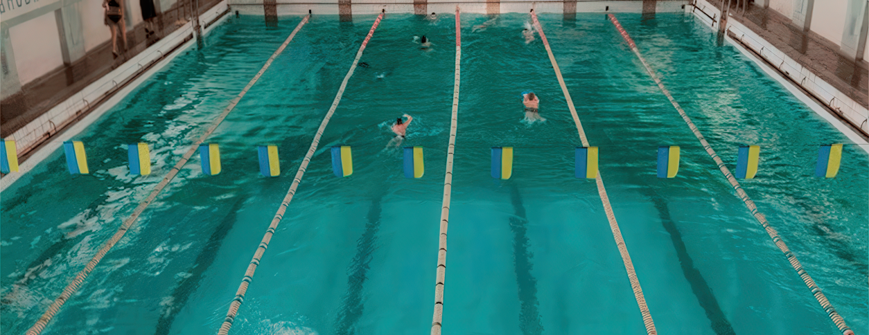 Індустріальний басейн проводить заняття з оздоровчого плавання для різного віку.