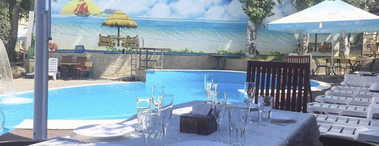 На території працює 1 відкритий басейн із прісною водою. Мінімальна глибина становить 0,8 м, а максимальна досягає 1,5 м, завдяки чому басейн підходить для дорослих та впевнених плавців. Температура води підтримується на рівні 28 градусів, що робить купання комфортним протягом дня. Простір біля басейну організований з акцентом на зручність та відпочинок без зайвої метушні.