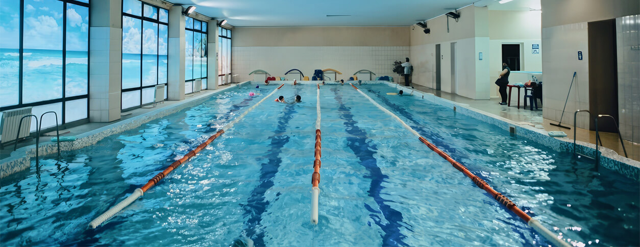 - Великий басейн: 25 метрів, глибина від 1,2 до 2,2 метра, температура 27-28°C;