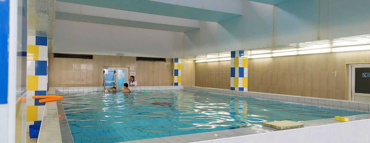 - Дитячий басейн: площа 8×8 метрів, глибина від 0,8 до 1,2 метра, температура 32-33°C.
