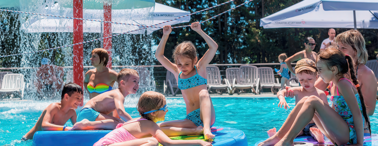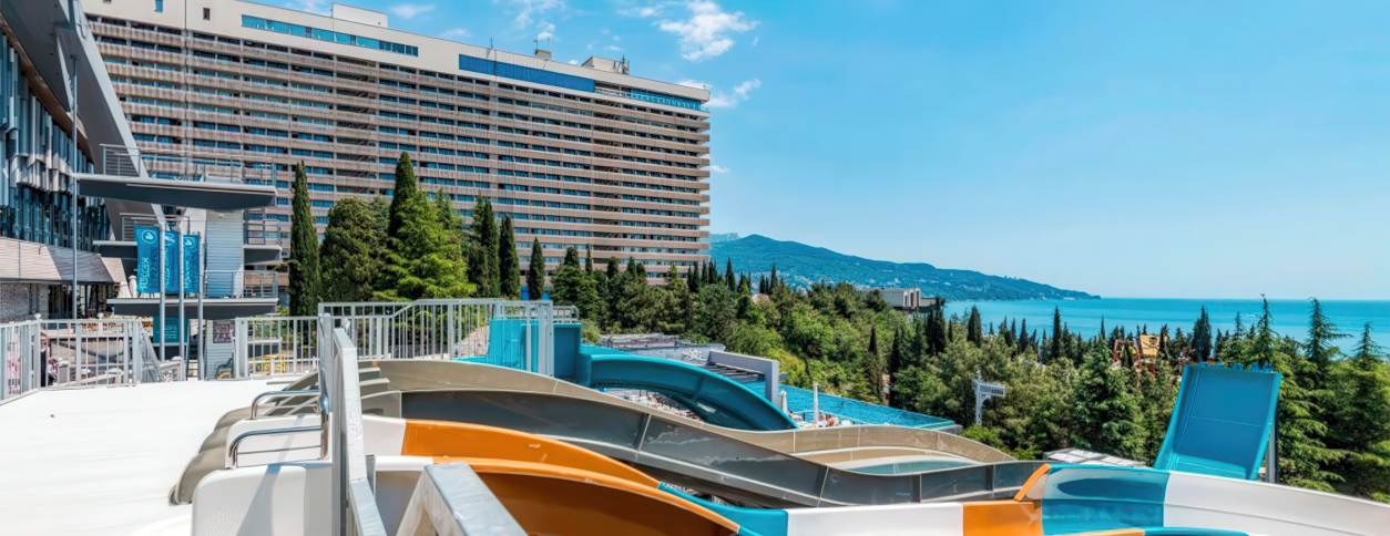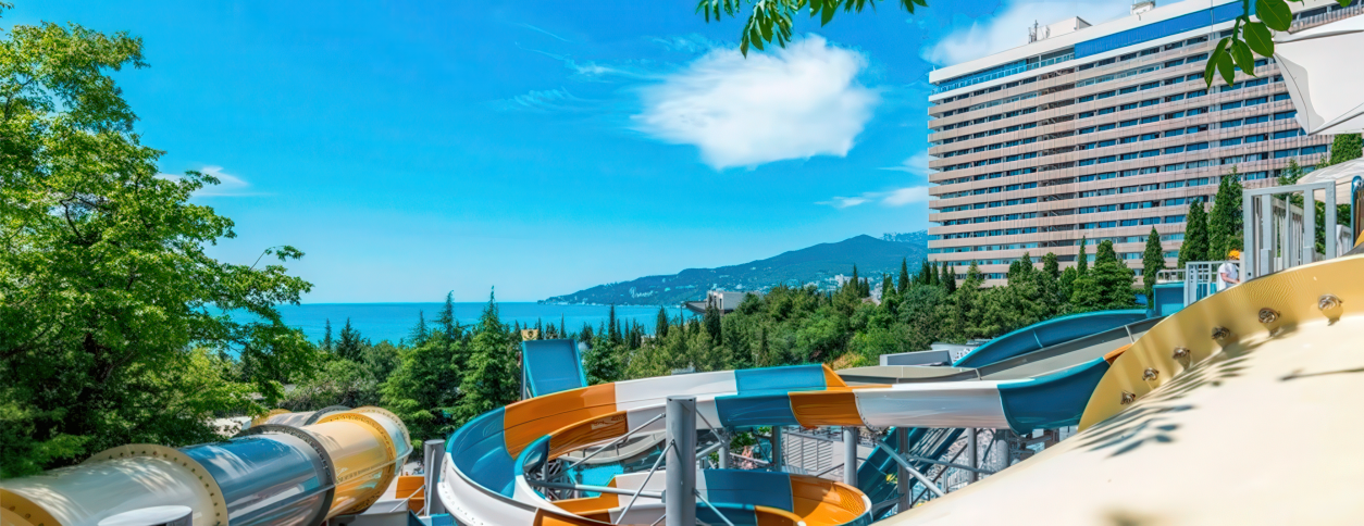 Аквапарк работает на базе отеля Интурист в Ялте, ориентированный на курортный и семейный отдых. Формат объединяет открытые и закрытые зоны, отдельные детские бассейны и пространство для активного плавания. Комплекс подходит как для спокойного отдыха у воды, так и для насыщенного дня с аттракционами и анимацией. Курортная инфраструктура делает его популярным местом среди гостей Ялты в высокий сезон.