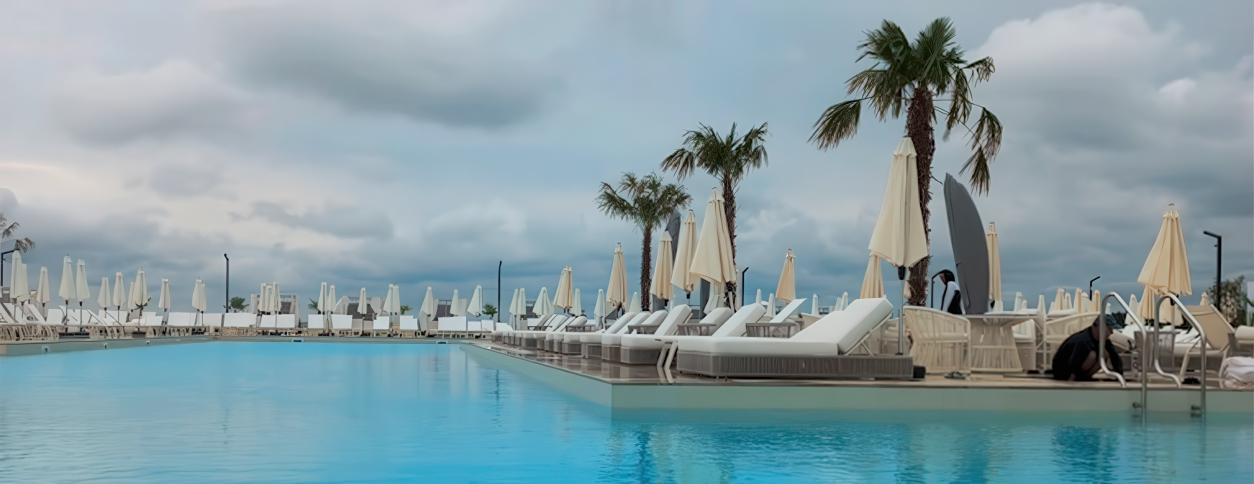 В составе комплекса работает 2 бассейна, рассчитанные на разные возрастные категории. Минимальная глубина составляет 0,2 м, что удобно для детей, максимальная глубина достигает 1,6 м и подходит для взрослых посетителей. Температура воды поддерживается на уровне 28 градусов, что комфортно для длительного купания. Используется пресная вода, подходящая для регулярного посещения и семейного отдыха.
