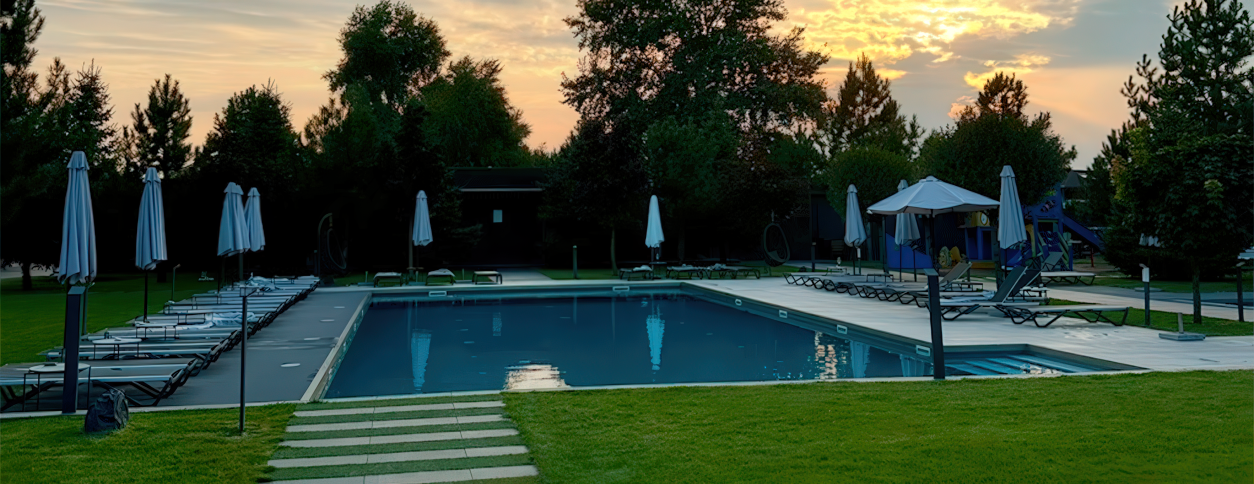 Это часть закрытого бассейнового комплекса, расположенного на территории загородного курортно-SPA пространства, ориентированного на комфортный отдых и оздоровление. Формат бассейна сочетает рекреационное плавание с возможностью спокойного отдыха в ухоженной и приватной обстановке, что делает его подходящим для посещения в любое время года.