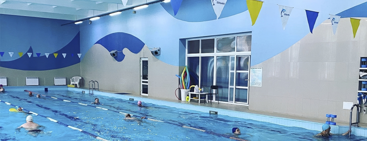 Основные занятия в бассейне Дельфин — это обучение плаванию детей и взрослых, а также аквааэробика. Тренировки проходят с использованием специального инвентаря, такого как доски, нудлы, ласты, аквагантели и др.
