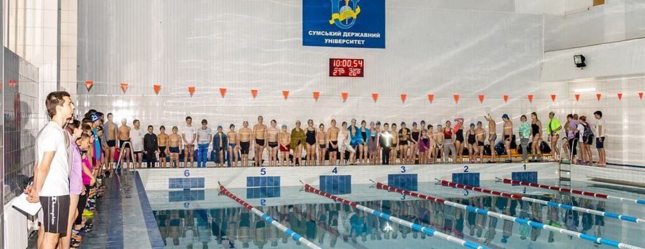Бассейн СумГУ (Сумы) состоит из шести дорожек длиной 25 метров и оснащен стартовыми тумбочками для проведения спортивных соревнований. Также здесь есть две вышки высотой 3 и 5 метров. Особенностью бассейна является то, что с вышек разрешают прыгать не только спортсменам университета, но и посетителям в конце сеанса. Эта аквазона является самой большой в Сумах.