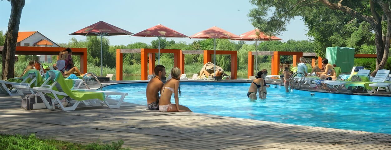 Комплекс Goodzone в Днепре предлагает Вам отдых у бассейна или на открытом пляже. Размеры ванны составляют 23×7 метров, глубина — 0,6-1,5 метра. Вокруг бассейна установлены шезлонги. На пляже работают спасатели, а также инструкторы, которые могут научить Вас плавать.