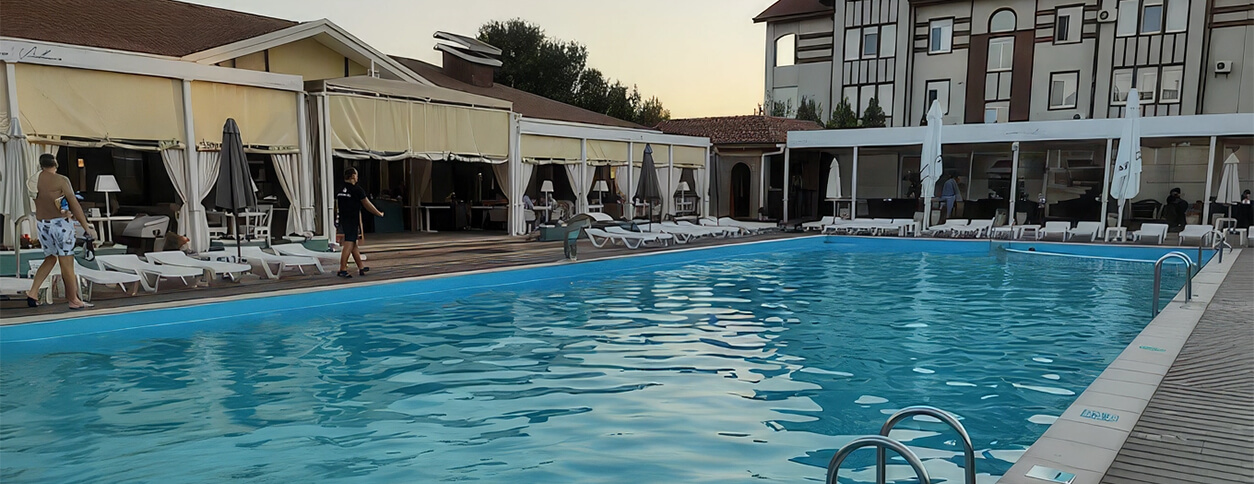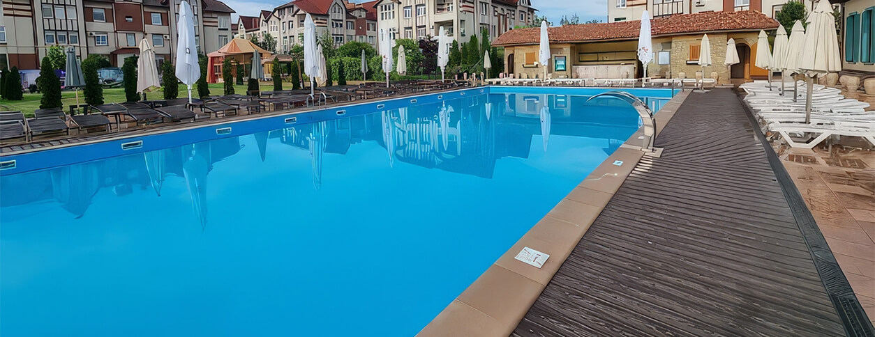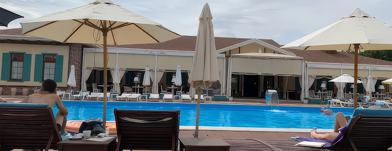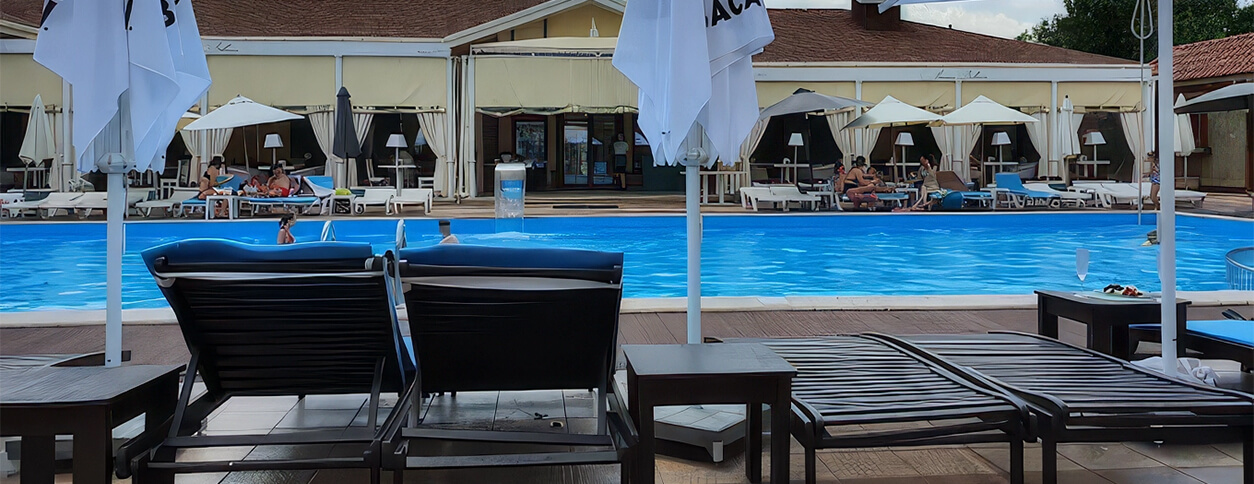Кафе Моника Беллуччи г. Запорожье предлагает Вам открытый бассейн площадью 250 кв.м. с безопасной детской аквазоной. Вокруг него расположено большое количество удобных современных лежаков и широкие зонтики. Также Вы можете арендовать отдельное бунгало.