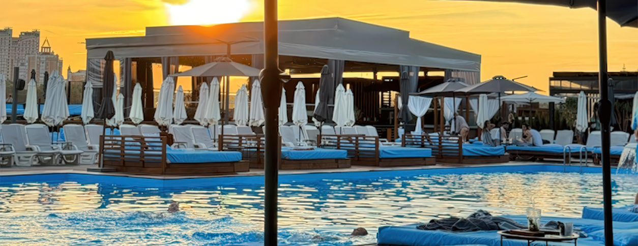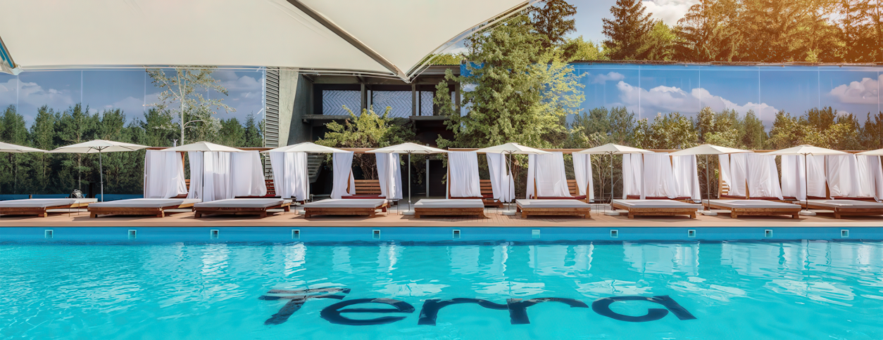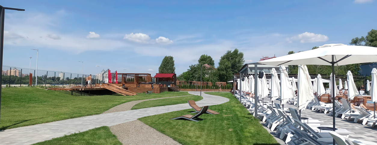 Пляжный клуб Terra находится в Парке Муромец, расположенном в Деснянском районе Киева, и ориентирован на летний отдых у воды в формате open air. Это открытая локация с бассейнами рекреационного типа, где акцент сделан на комфорт, неформальную атмосферу и отдых на природе. Пространство подходит для взрослых компаний и семей с детьми, которые ищут альтернативу городским пляжам. Формат клуба больше про расслабленный досуг, чем про спортивное плавание.