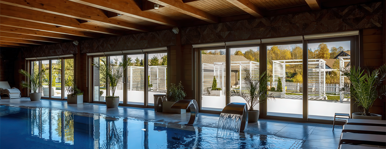 Бассейн в загородном клубе Equides является частью wellness-пространства премиального формата, расположенного под Киевом. Комплекс ориентирован на отдых, восстановление и регулярные водные процедуры в спокойной загородной атмосфере. Формат сочетает закрытый и открытый бассейны, а также отдельную детскую зону, что делает локацию удобной для взрослых, семей и гостей клуба разного возраста. Пространство подходит как для расслабленного плавания, так и для оздоровительного отдыха в течение всего года.